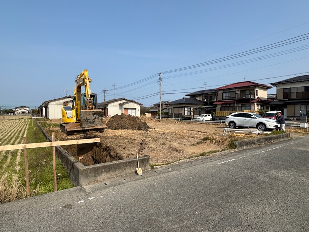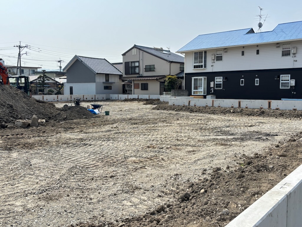 土地の売買が完了しましたので、建物に先行して隣地境界ブロック工事を行なっていきます。