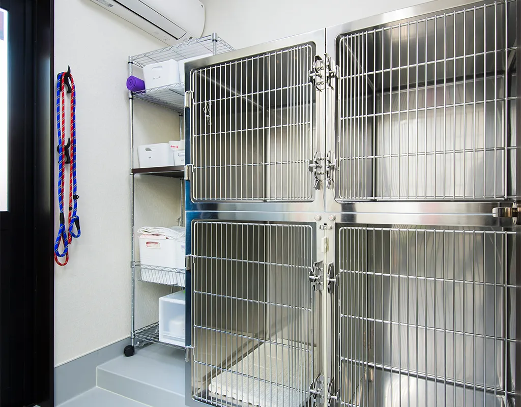 大切なペットを預かる施設だから丈夫で信頼できる所にしたい。そんな思いを元に解放的で、尚且つ機能的な造りを目指しました。自動ドアと看板には可愛らしいワンちゃんを全面に出しています。